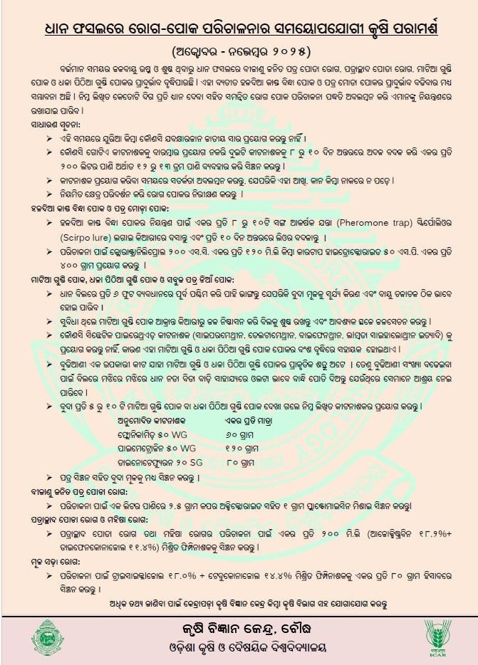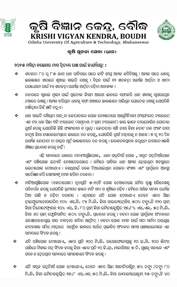Krishi Vigyan Kendra is a district level innovative institution mainly concerned with Transfer of Technological knowledge through On-Farm Testing (OFT), Front Line Demonstration (FLD), training and Farm Advisory Services at grass root level. The KVK, Boudh since its inception from 2005 has been striving hard to achieve this mandate under the aegis of Orissa University of Agriculture & Technology, Bhubaneswar. The activities of the KVK have supported a cross section of farming communities to enhance productivity of rice, vegetables, oilseeds & pulses respectively. The achievement has been possible with the evaluation of new technology through On Farm Trials in participatory research mode, creating an impact to accept the best technology through Front Line Demonstration followed by capacity building training programmes. It is needless to highlight the impact of Kissan Mela, Exhibitions, Field days, Scientist visit to farmer’s field, Published extension literatures, Film show, Exposure visit and other extension activities which has motivated the farmers towards desirable direction.