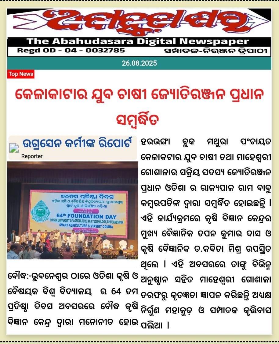 Falicitation of Farmer cum Enterpreneur at OUAT Foundation day -2025 |